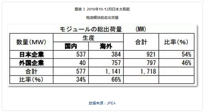日本太阳能市场如预期般呈现衰退走势,2016年7月由中国市场卷起的全球性组件跌价更让日本太阳能厂的运营雪上加霜。Panasonic、Kyocera、夏普太阳能事业皆因市况疲软而呈现下滑走势,集团业绩受到拖累。自2014年起,日本已经是中国光伏组件最大的出口市场,中国品牌已经占据了日本市场份额的40%以上,到2016年已经达到了46%。