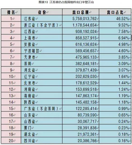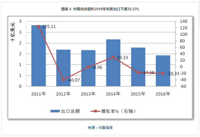 2016年,美国市场占中国组件出口的市场份额下降到11%,出口金额下降20.33%,为14.27亿美元。