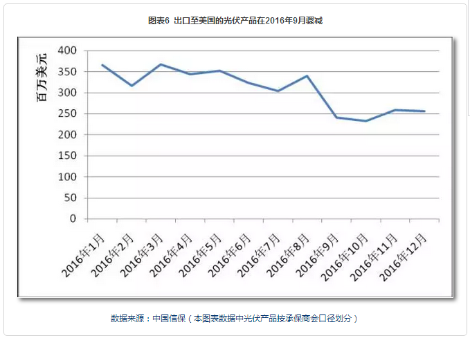 值得注意的是,受到美国大选的影响,我国出口至美国的光伏产品在2016年9月起骤减。