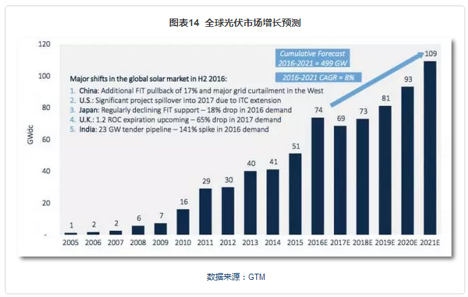 巴黎协议生效,将进一步拉动光伏产能扩张。《巴黎气候协议》(ParisAgreement)在2016年11月正式生效,有超过200个国家共同参与,生效后,签署国将开始按协议制定和执行温室气体减排计划,德国已宣布将在2022年前关闭国内所有核电站。巴黎协议将带来大量的可再生能源、清洁能源的投资需求,而光伏作为最自然的选择,将成为各国政府替代不可再生能源的最有效手段之一。一旦各国政府采取行动,遵循巴黎协议的承诺,光伏的产能扩张势在必行,而这类扩张,将在2017年开始体现。
