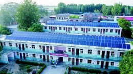 今年,河南省武陟县探索光伏产业扶贫新路,利用财政专项资金实施光伏扶贫,在该县17个行政村集中建设总容量692千瓦的光伏发电项目,对该县1431户贫困户进行专项帮扶,让屋顶生“金”。图为位于河南省武陟县圪垱店乡安庄村的光伏发电扶贫项目。