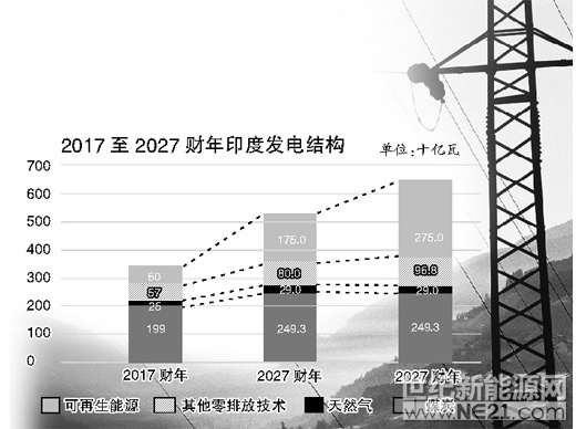 印度在签署《巴黎协定》时曾作出国家自主贡献承诺,提出到2030年要把非化石燃料发电在总装机容量中的占比提高至40%。而此次发布的电力规划草案则更为乐观地预计,到2022年,印度非化石燃料发电将占总装机容量的46.8%;到2027年,占比将达56.5%。如果印度能够按照设定的时间表实现电力规划中的目标,那么到2024年左右,印度可再生能源发电总装机将超过煤电。
