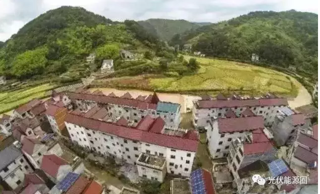 浙江省兰溪市岗岭下村。该村用优惠的政策鼓励村民安装个人光伏屋顶发电装置用以养老。目前,该村已经有20户家庭安装了光伏发电装置,总装机容量达到了70千瓦。一位村民算过一笔账“安装了3kw的家用光伏电站,减除村里补贴后共投入资金1.8万元,每月平均发电约300度,每千瓦时电的电费加上补贴可获利1元钱,大约6年就可回收成本,一年算下来有3600元收益。”岗岭下村的光伏养老模式还登上了人民日报,获得了多方的认可。(详见2015年12月17日人民日报)。
