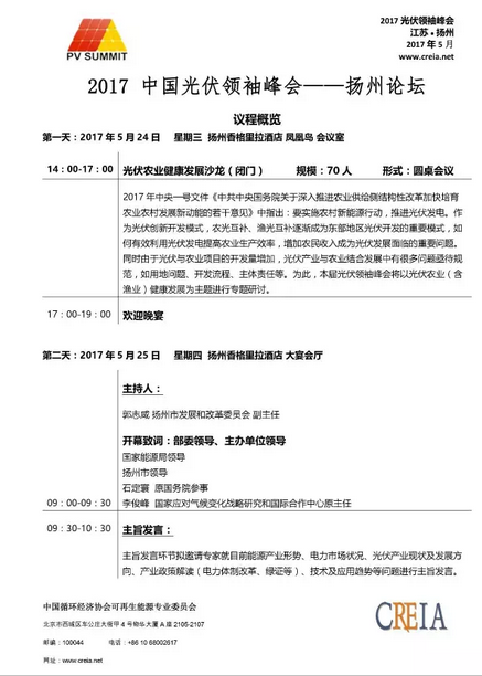 “2017中国光伏领袖峰会”(China PV Summit 2017,CPS)即将于5月24-25日在江苏扬州香格里拉酒店举行,阿特斯阳光电力集团是此次峰会主要承办方。
