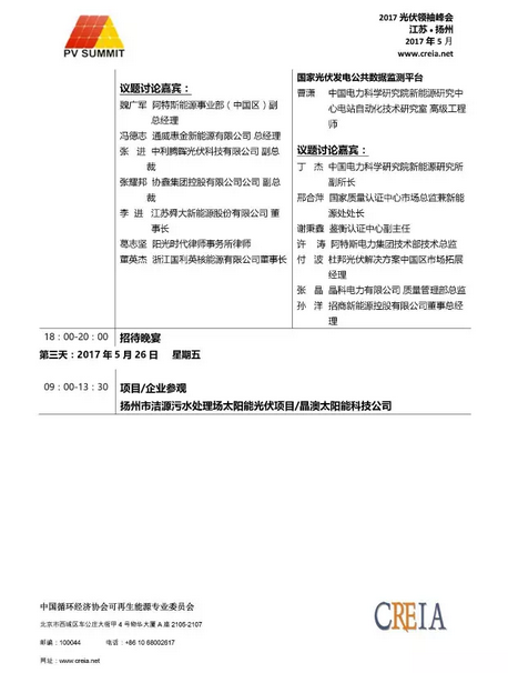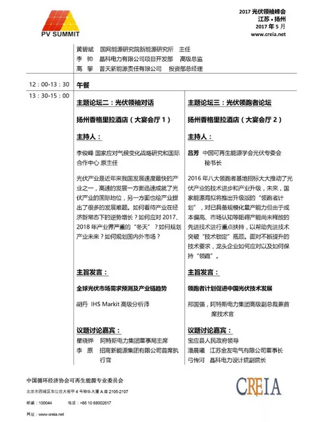 与此同时,瞿晓铧董事长还将围绕2017光伏“领跑者”基地征求意见稿与业内相关参会代表展开讨论,并提出企业的建议,让新的领跑者政策能够从电池和组件效率、能耗和前沿技术指标方面真正体现企业领跑技术的实力。