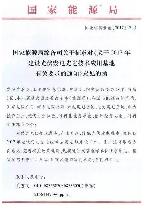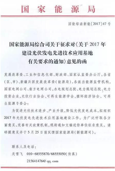 各单位需在5月25日之前将意见反馈到国家能源局新能源司。