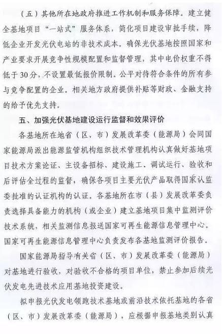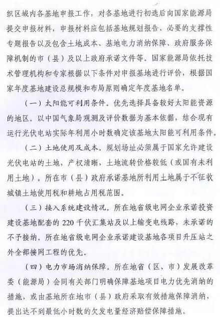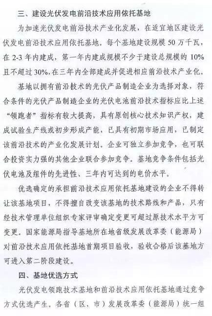 通知还强调,每个基地建设规模确定为500MW,在2-3年内建成,第一年内建成规模不少于建设总规模的10%且不超过30%,在三年内全部建成并促进相应前沿技术产业化。