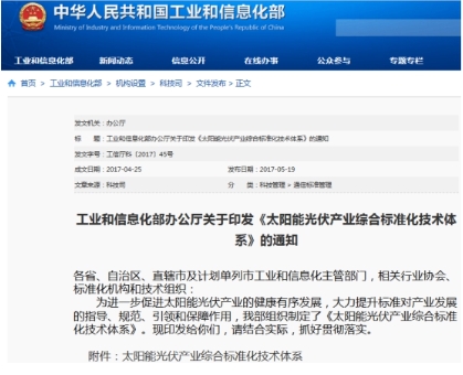 随着全球能源短缺和环境问、题日益突出,光伏产业作为具有发展前景的可再生能源产业之一,日益受到世界各国的高度重视并快速发展。近年来,我国光伏产业发展迅速,成为能够同步参与国际竞争并取得优势的产业之一。2016年,我国光伏产业总产值达到3360亿元,光伏电池产量约为49GW,光伏组件产量约为53GW,光伏新增并网装机量达到34.5GW,产业规模继续位居全球首位。本次工信部《通知》的印发,对光伏行业健康有序的发展无疑起到重要助推作用。