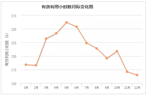 以连云港市为例,各月的年均有效利用小时数分布情况如下图所示。