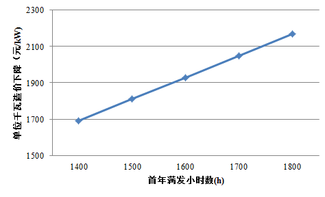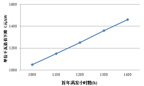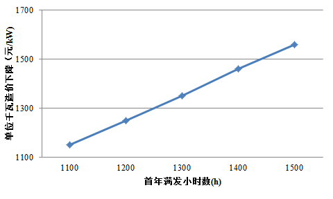 从图1~3可以看出,要想同样获得8%的收益率,630后项目投资要下降1000~2200元/kW之间,即1~2.2元/W。