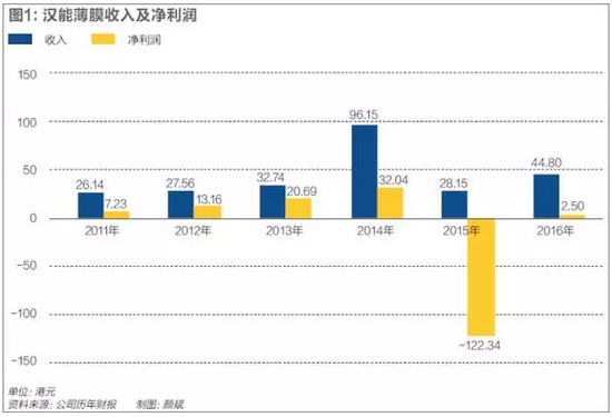 停牌两年后,汉能薄膜发电出现了触底回升的迹象。4月26日,汉能薄膜发电发布2016年报。2016年汉能薄膜发电收入约44.8亿港元,同比增长59%;毛利约26亿港元,同比增长89%;净利润扭亏为盈,2016年净利约2.5亿港元。