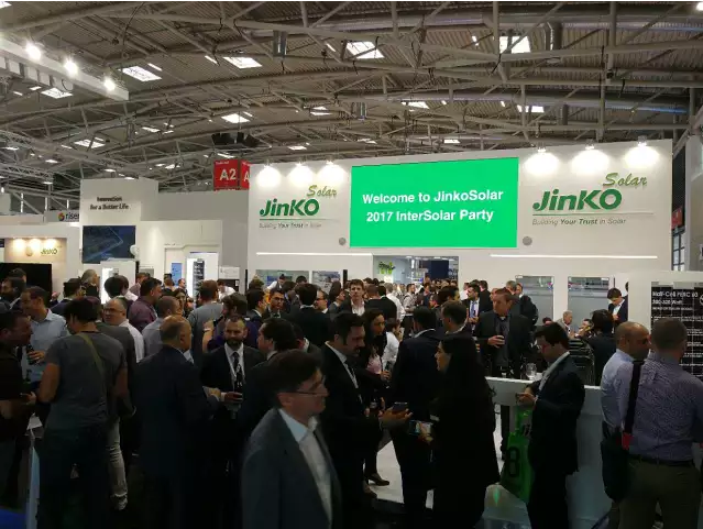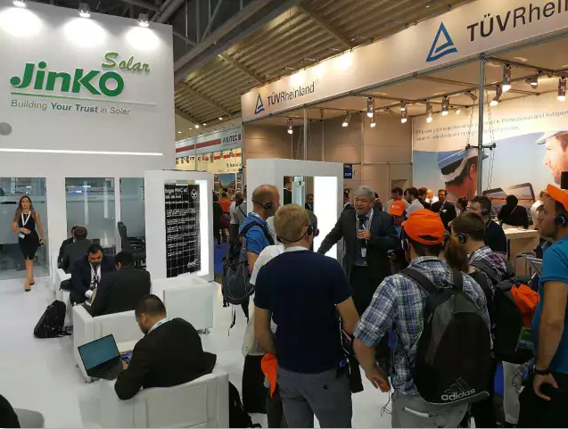 简洁的展台设计与新组件的展示,晶科能源在今年的InterSolar 欧洲展会展现出了行业第一的国际化的品牌形象。晶科首次展出半片组件和PERC MX组件,展位人头攒动热闹非凡,是本次展会中最闪亮的焦点之一。