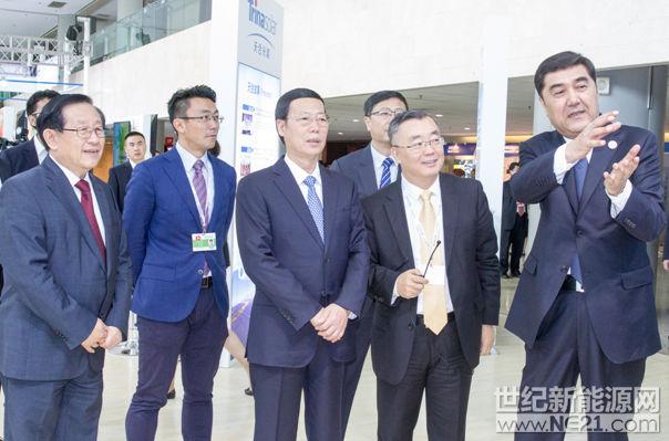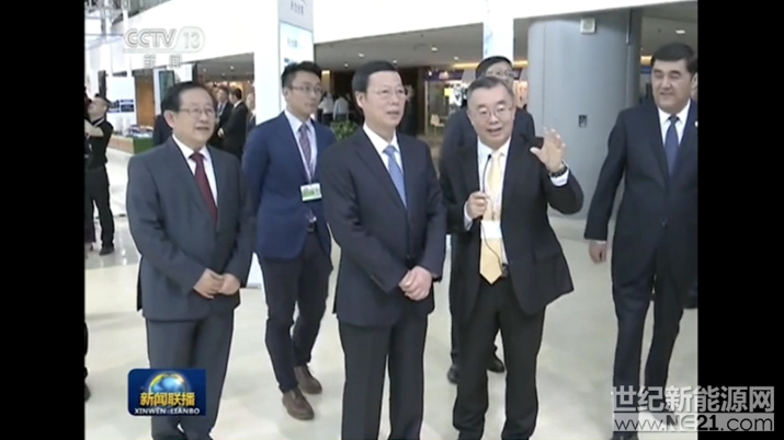 中共中央政治局常委、国务院副总理张高丽参观天合光能展厅,并听取天合光能首席品牌官杨晓忠的介绍