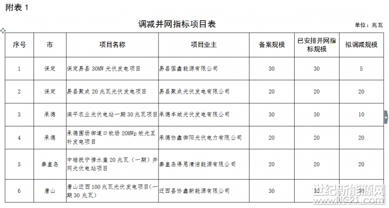 到6月30日前,列入并网计划尚未开工建设的,全部调减;企业不出具承诺函,经市发改核查不能如期并网的,全部调减;企业承诺6月30日前并网规模小于已安排并网计划规模的,调减不能并网部分。针对以上情况,此次涉及调减项目10个、调减规模14.1万千瓦(附表1)。
