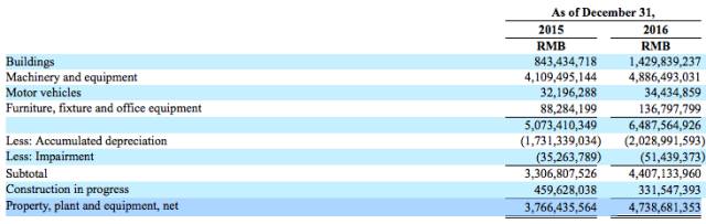 我们看行业最大的组件企业晶科能源,2016年年底累计固定资产64.87亿人民币,累计折旧20.28亿人民币,净固定资产47.38亿。