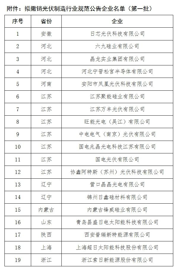 原标题:关于拟撤销光伏规范公告企业名单(第一批)的公示