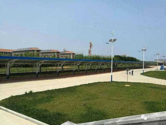 烟台东方电子股份公司东方电子智能科技园厂区的150kw车棚光伏,原停车位加光伏顶。