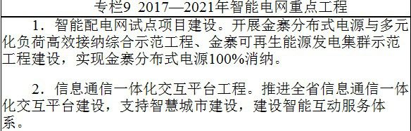 《规划》还指出,提高电网接纳和优化配置多种能源的能力,满足多元用户供需互动,加快建设网架坚强、广泛互联、高度智能、开放互动的智能电网。开展金寨分布式电源与多元化负荷高效接纳综合示范工程、金寨可再生能源发电集群示范工程建设,实现金寨分布式电源100%消纳。
