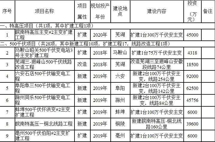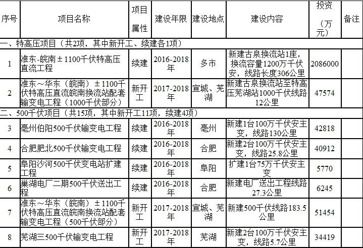 附件:1.2017年安徽电网220千伏及以上建设项目表