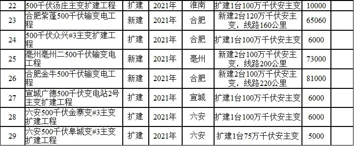 2018—2021年安徽电网500千伏及以上建设项目表