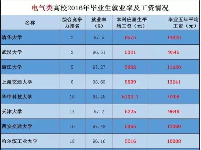 电力行业从电站建设到发电公司,再到电网公司,再到售电公司,每一个环节都需要大量的专业电力人才,我们耳熟能详的高大上企业包括五大电力、四小豪门、两大电网、两大辅业以及各地的售电公司,人才需求量还是不少的。以下是相关电气行业高校2016年毕业生就业率、工资情况,以及过去毕业生毕业五年后的薪资情况。
