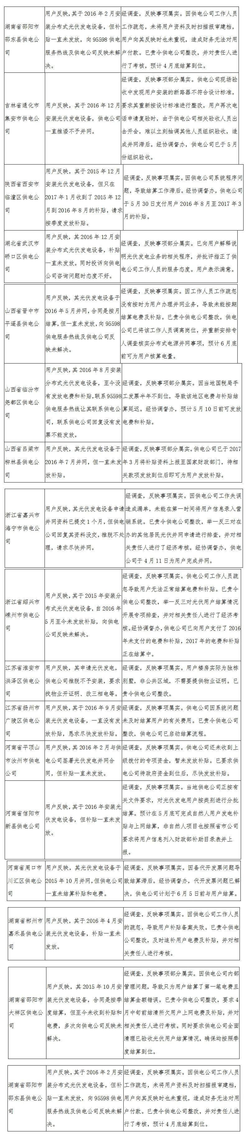 原标题:2017年5月12398能源监管热线投诉举报处理情况:涉光伏17起