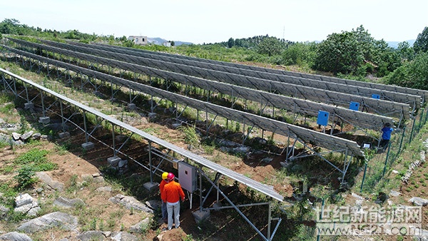 图为萧县供电部门员工在欧盘光伏电站巡检运行状态。李令响 摄