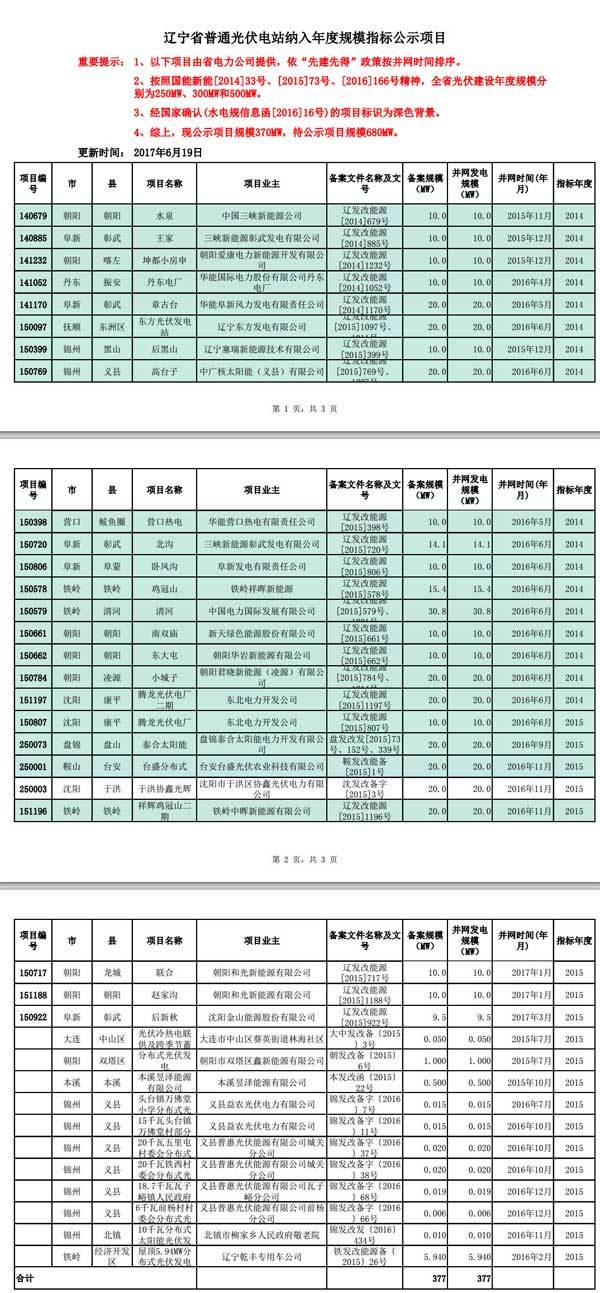 备案规模377MW 辽宁普通光伏电站纳入年度规模指标公示项目