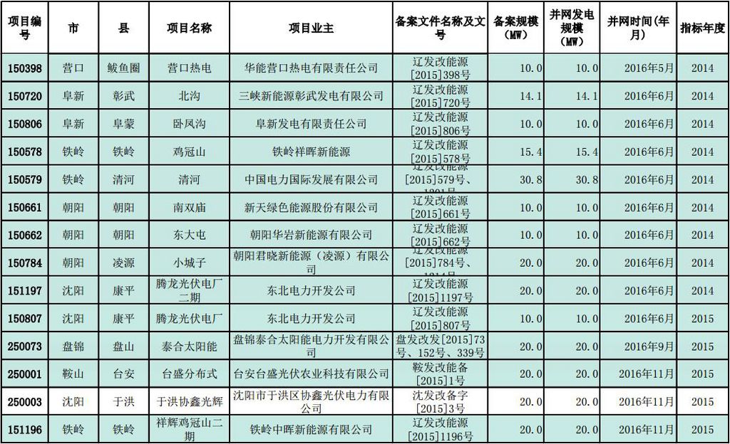 来源:辽宁省发展和改革委员会发布时间:2017-06-22 09:42:50 索比光伏网讯:重要提示:1、以下项目由省电力公司提供,依“先建先得”政策按并网时间排序。