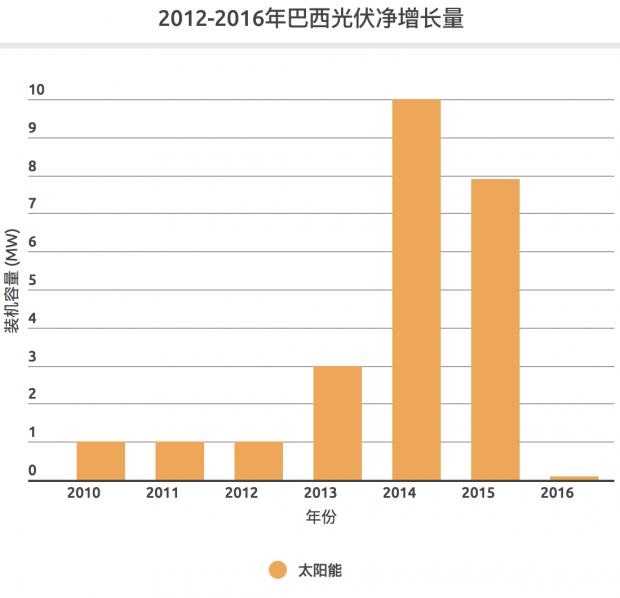 近年来,巴西的光伏产业快速增长。2014年到2015年,巴西光伏新增装机量增加了4倍,据巴西政府最新的“能源发展十年规划”(PDE2024),到2024年其光伏发电装机规模增至7GW,约占总发电量的3.3%;到2050年,这个比例有望升至18%。
