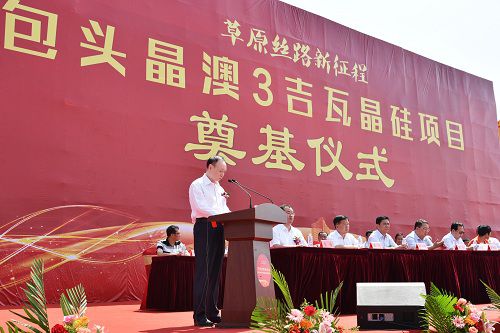 晶澳公司董事长靳保芳在致辞中引用了《道德经》里的“居善地,心善渊,政善治,事善能,动善时”,靳董事长表示:“包头是块宝地,我们晶澳从事的也是“开发太阳能、造福全人类”的新能源战略新兴产业。善业、善地、善时,一定能够取得互利共赢的善果”。晶澳人始终秉持着“堂堂正正做人,兢兢业业做事”的企业精神将事业做大做强,靳董事长表示,“项目开工后,我们将一如既往地保持‘晶澳速度’,加快基地建设进度,争取年内及早投产,早日为地方经济发展做贡献。”
