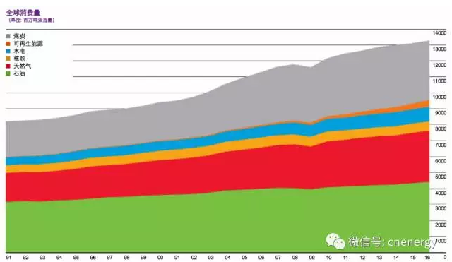 2016年全球的能源需求连续第三年保持疲软态势,仅增长1%,约为过去十年平均增长率的一半。