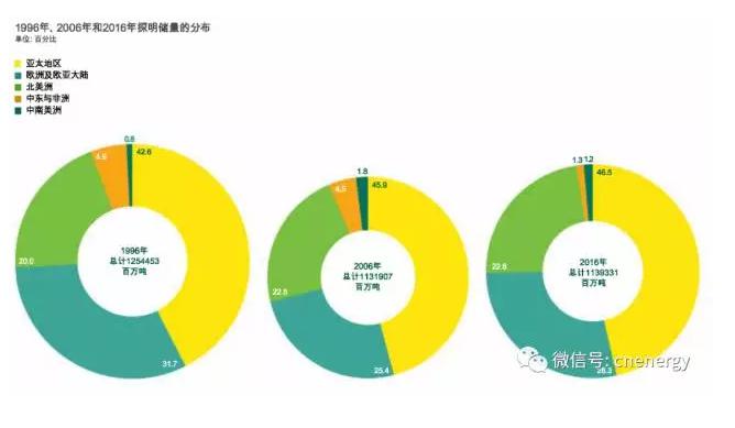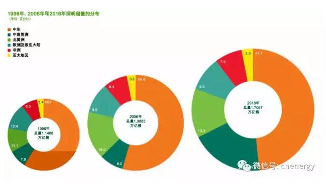 2016年,全球探明石油储量增加了150亿桶(0.9%)至1.707万亿桶,按照2016年产量水平,这足够满足世界50.6年的产量。