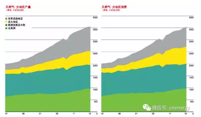 2016年全球天然气消费量增加1.5%,低于2.3%的十年平均增长率。不过,天然气消费量在欧洲(增长6%)、中东(增长3.5%)和中国(增长7.7%)增长强劲。