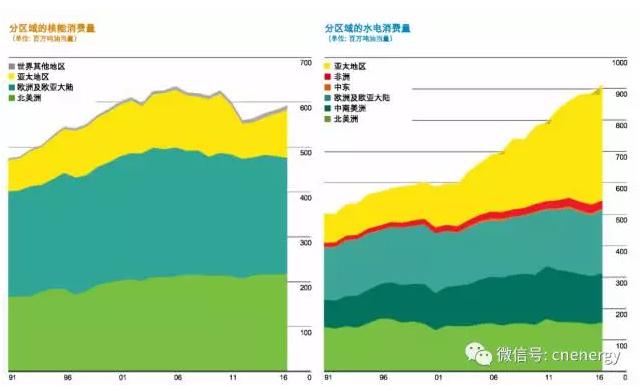 核能产量在2016年增长1.3%,即930万吨油当量。中国核能产量年增长24.5%,核电所有净增长均来自中国。中国的增量达到960万吨油当量,是2004年以来(相比于任一国家)的最大增量。