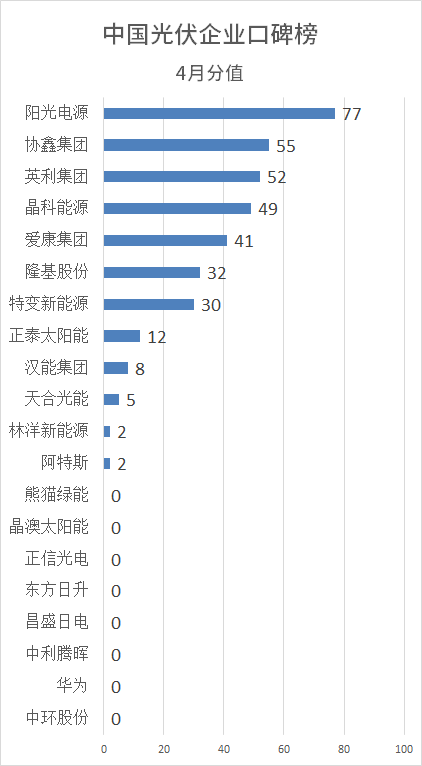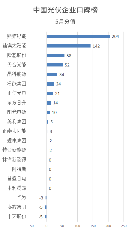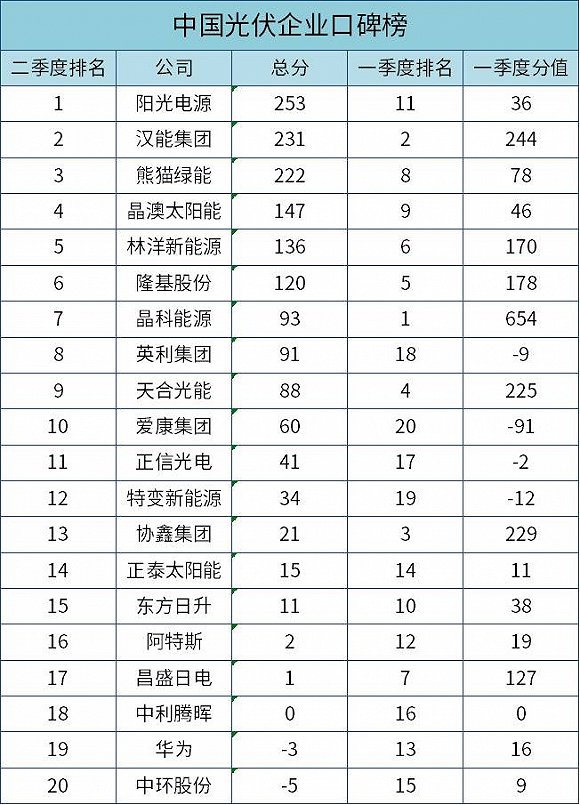 以上数据,反映出以20家样本企业为代表的中国光伏企业口碑整体向好,两极分化现象得以缓解。