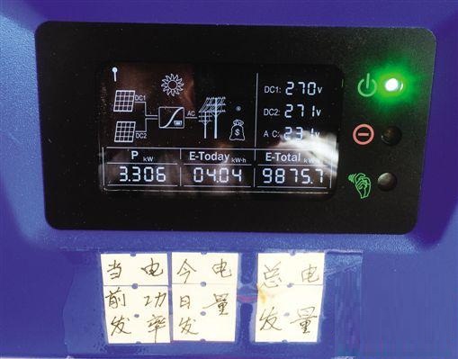 配套安装的逆变器显示当前功率、今日发电量和总发电量,让居民一目了然。记者 李小萌/摄影