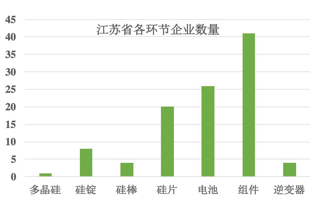江苏省是我国光伏产业完备程度最高、企业数量最多的省份。根据工信部发布的符合《光伏制造行业规范条件》企业名单,共244家企业上榜,而江苏就有89家,占到36.5%!而且涵盖全产业链,具体如下图所示。
