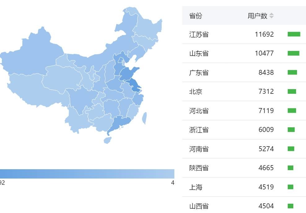 从上图可看出,江苏省的关注人数最多。从侧面反应,江苏省的光伏行业的从业人员最多。