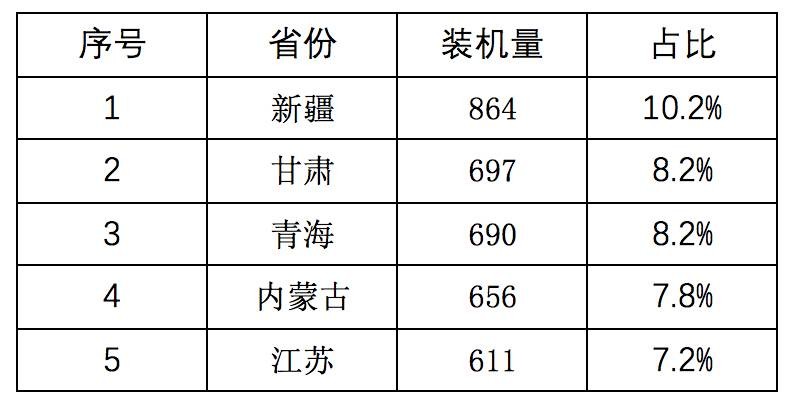 表1:截至2017年3月底累计装机量前5省份(单位:万kW)