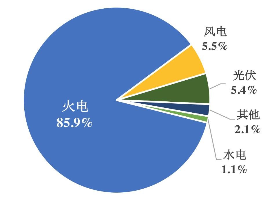 从图3、图4可以看出,江苏省虽然风电、光伏的装机量占比达到5.5%、5.4%,但其发电量仅占到全省发电量的0.76%和0.17%,合计不足1%。江苏省光伏无论是装机量还是发电量,占比都远低于全国平均值。