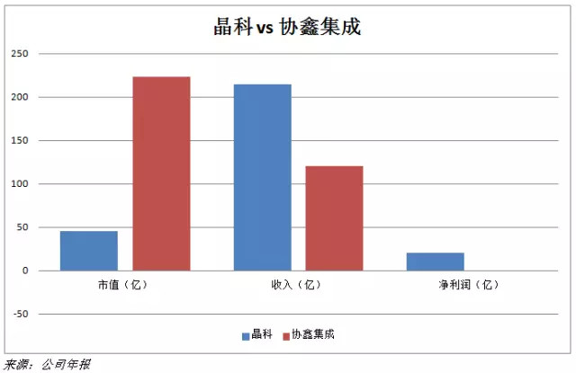 如果你对光伏行业了解,你一定会很纳闷,为什么在国内上市的三线厂商,协鑫集成,市值超过220亿,而在美国上市的一线龙头,晶科能源的市值才40亿,仅为其五分之一?