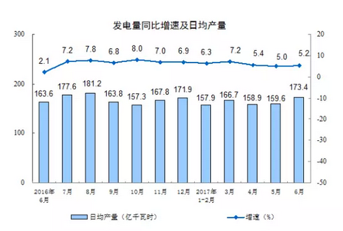 今日,国家统计局发布2017年1-6月份规模以上工业发电量29598亿千瓦时,同比增长6.3%。其中新能源方面,太阳能发电量289亿千瓦时,同比增长最快,达35.1%;风力发电量1327亿千瓦时,同比增长17.9%。