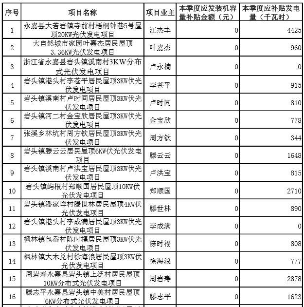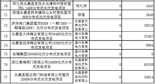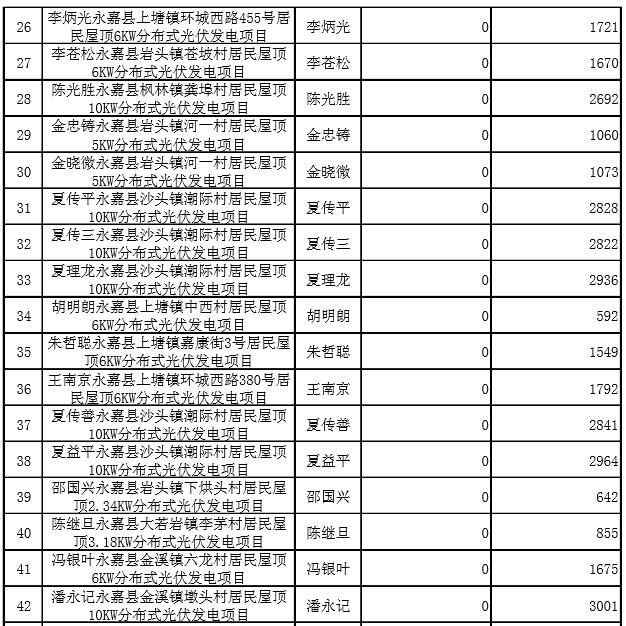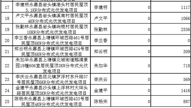 原标题:2017年第二季度永嘉县分布式光伏发电拟补贴项目公示