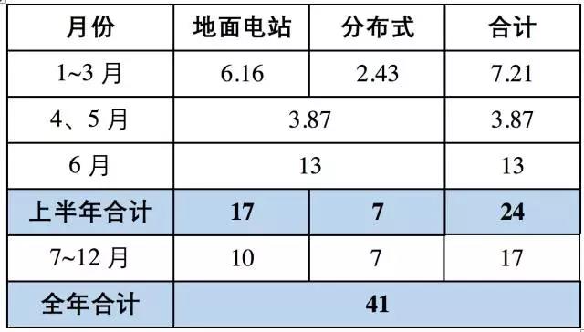 表1:2017年上半年的光伏装机情况(单位:GW)