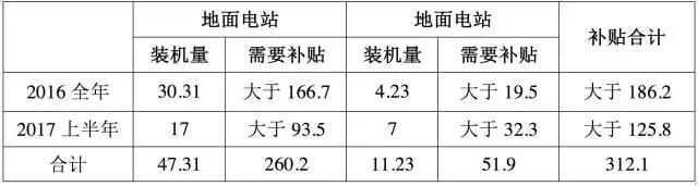 表2:2016~2017上半年光伏补贴需求粗估(单位:GW、亿元)