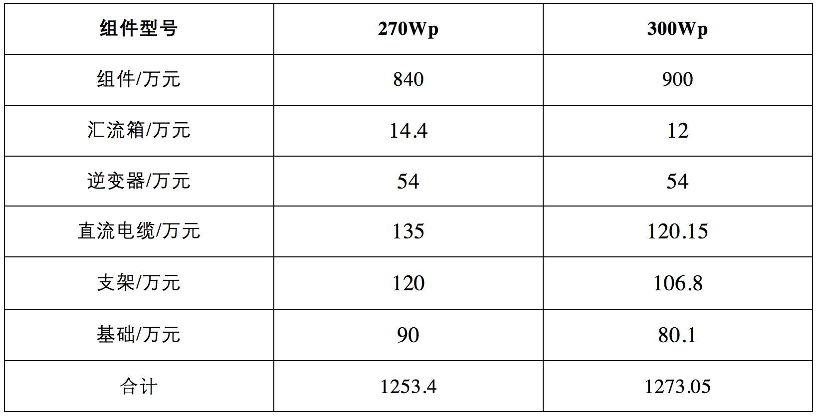3MW的项目采用270Wp组件和300Wp组件的初始投资不相同的部分进行简单对比,如下表所示。