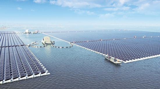 中国目前最炙手可热的新项目是位于安徽省东部的全球最大的浮动太阳能电站,足以满足1.5万户家庭的用电需求。