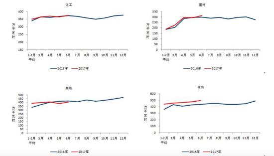 1-6月份,化学原料制品、非金属矿物制品、黑色金属冶炼和有色金属冶炼四大高载能行业用电量合计8802亿千瓦时,同比增长6.3%,增速比上年同期提高9.6个百分点;合计用电量占全社会用电量的比重为29.8%,对全社会用电量增长的贡献率为29.7%。其中,化工行业用电量2170亿千瓦时,同比增长3.2%,增速比上年同期回落0.4个百分点;建材行业用电量1503亿千瓦时,同比增长3.6%,增速比上年同期提高4.4个百分点;黑色金属冶炼行业用电量2356亿千瓦时,同比增长2.7%,增速比上年同期提高12.1个百分点;有色金属冶炼行业2774亿千瓦时,同比增长13.9%,增速比上年同期提高18.3个百分点。