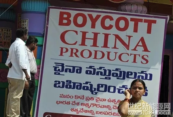 2016年11月,印度街头宣传“抵制中国产品”的海报。 资料图